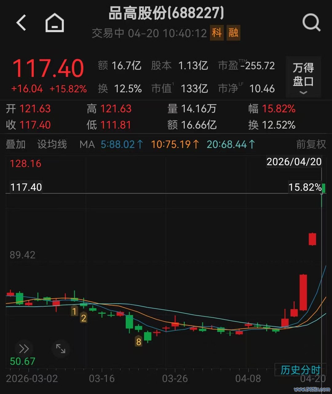 4月20日早盘,A股多只算力芯片概念股飘红。品高股份(688227.SH)涨超15%,该股此前两个交易日都20%涨停。翱捷科技(688220.SH)涨超14%,该股此前六个交易日已累计上涨14.68%。仁东控股(002647.SZ)涨停,海光信息(688041.SH)、寒武纪(688256.SH)股价也飘红。