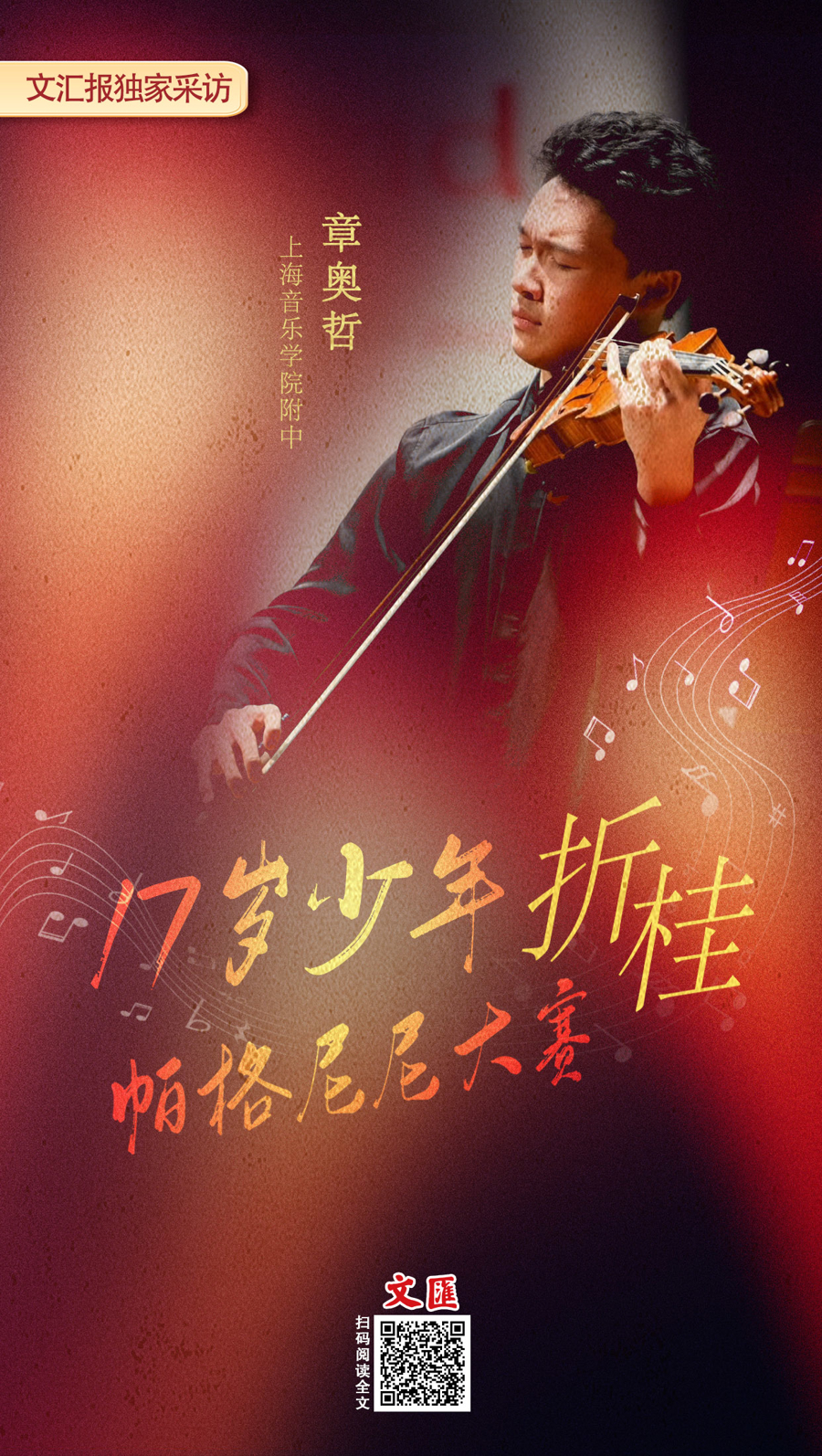 当地时间10月26日,在意大利热那亚举行的第58届帕格尼尼国际小提琴比赛闭幕式音乐会上,本届大赛第一名、17岁的中国选手章奥哲奏响了1743年的瓜奈里“大炮”名琴——这把帕格尼尼生前使用的名琴。就在前一天,章奥哲一举斩获本届比赛金奖和最佳帕格尼尼协奏曲演奏奖,成为继吕思清、黄滨、黄蒙拉、宁峰之后第五位中国“帕格尼尼大奖”得主。