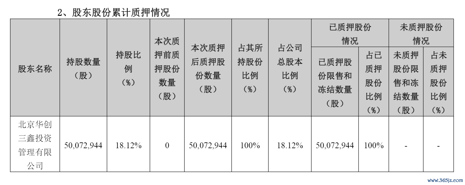 2025年12月初,控股股东华创三鑫将其所持有的震安科技全部股份进行质押,100%的质押比例在A股上市公司中极为罕见,说明新股东自身资金压力也很大。